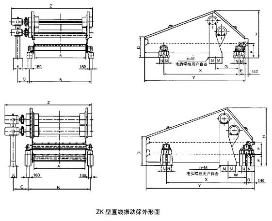 ZK型直線振動(dòng)篩技術(shù)性能及安裝尺寸